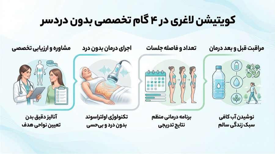 درمان لاغری با کویتیشن طی سالهای اخیر با استقبال چشمگیر افرادی که بهدنبال کاهش سایز بدون دردسر و جراحی هستند روبرو شده است. این تکنولوژی با استفاده از امواج صوتی، بدون هیچ برشی یا بیهوشی، راهکاری برای حذف چربیهای موضعی ارائه میدهد و فرایند آن تماما سرپایی، سریع و کمعارضه است. با این حال، موفقیت و حفظ نتایج این روش به رعایت دقیق پروتکلهای پزشکی و توصیههای تخصصی قبل و بعد از درمان وابسته است. اگر قصد تجربه کویتیشن را دارید، How to چهار مرحلهای زیر میتواند مسیر استاندارد و کمعارضه را برایتان روشن کند.